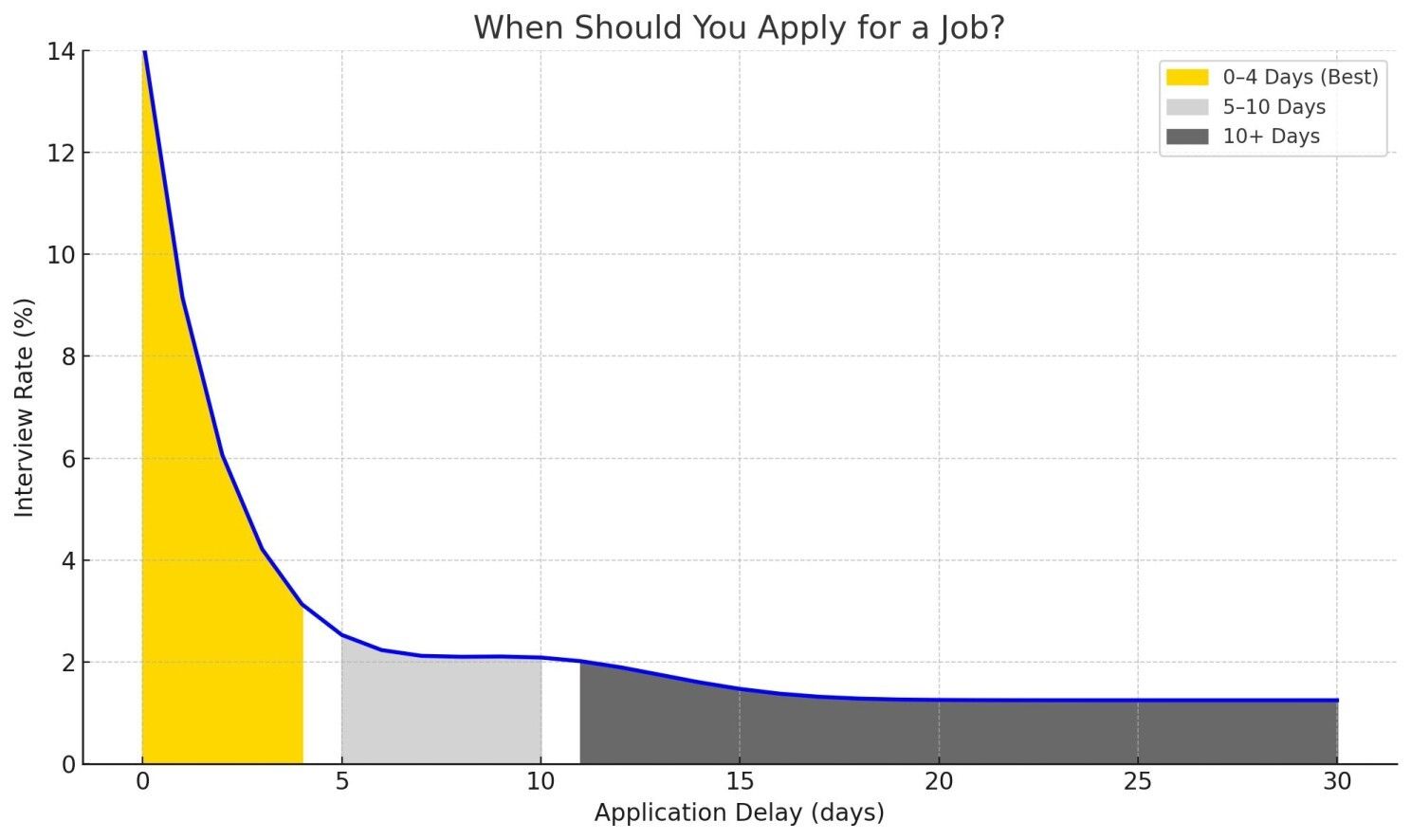 0–4 Days (Best Window): Highest interview rate, nearly 14% at peak